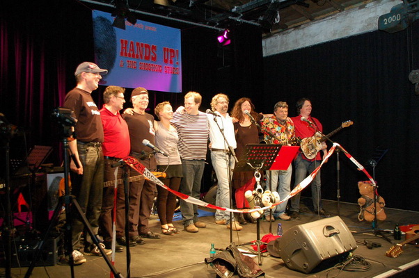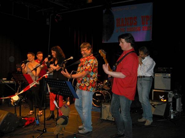 Begleitung der Weltbestsellerautoren Peter James, Hjoerdt und Rosenfeldt) “mordet die Band auch 2013 mit Worten und Noten“.